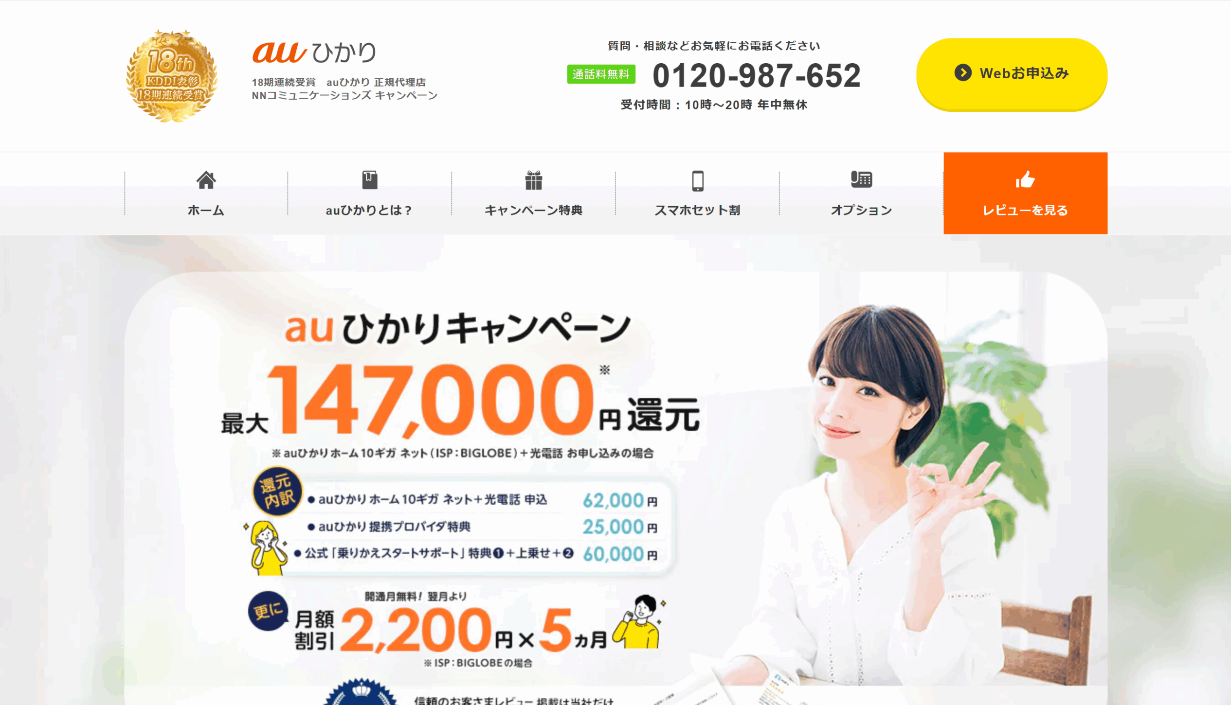 まず最初に注目したいのは、光回線サービス auひかり(提供元:KDDI)の“代理店”における実績です。正規代理店である 株式会社NNコミュニケーションズ が、KDDI より「優良代理店」として **18期連続で感謝状・表彰** を受けているという点が、申込み窓口としての安心感を後押ししています。