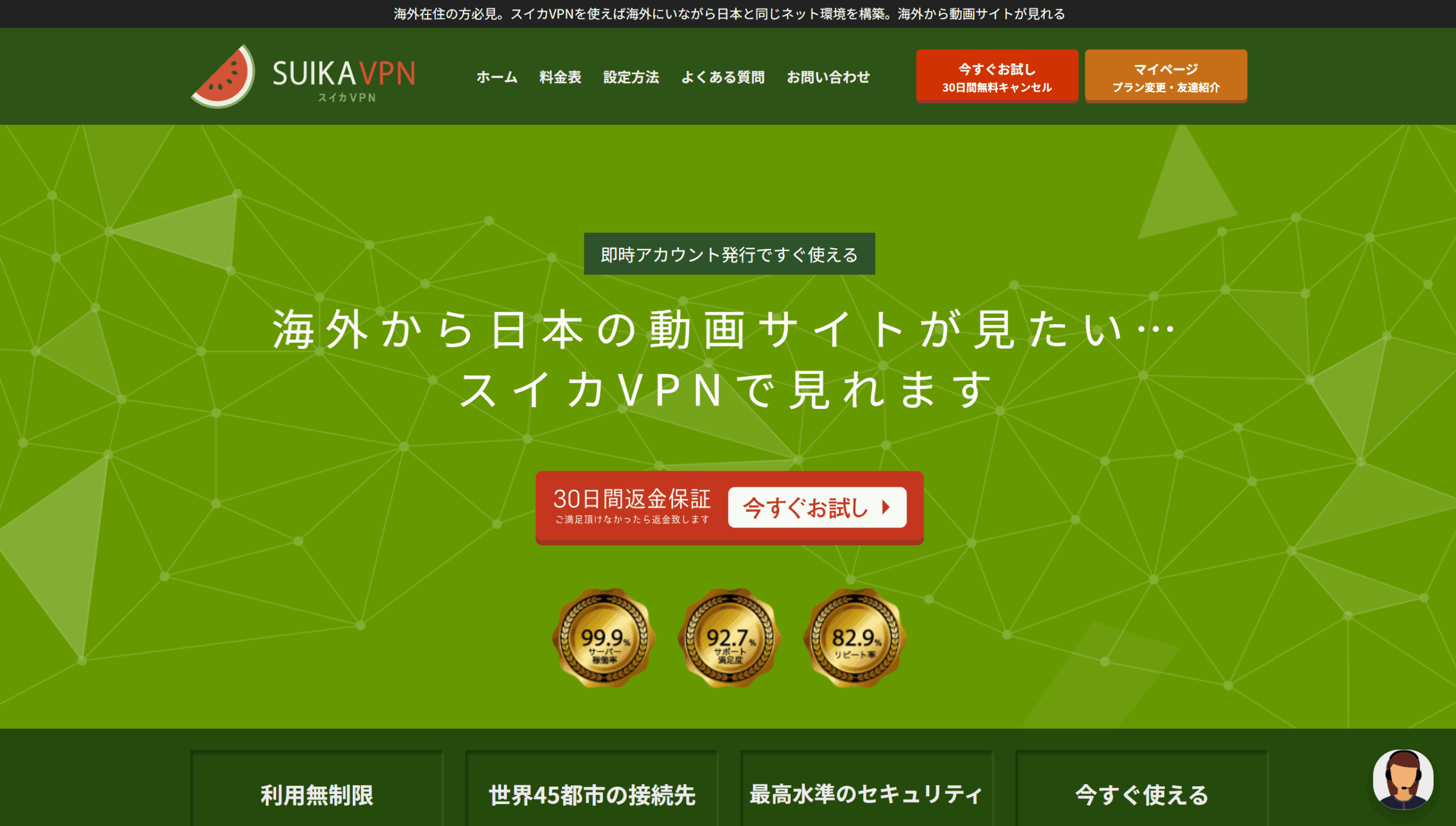 「スイカVPN」は、株式会社MAJ Tech(日本)が運営するVPN(仮想プライベートネットワーク)サービスです。海外からでも「日本と同じネット環境」を構築できるよう設計されており、特に海外在住の日本人にとって、「日本国内の動画配信サービスやサイトにアクセスしたい」「日本の住所・IP条件付きサービスを使える環境を整えたい」といったニーズに応えます。