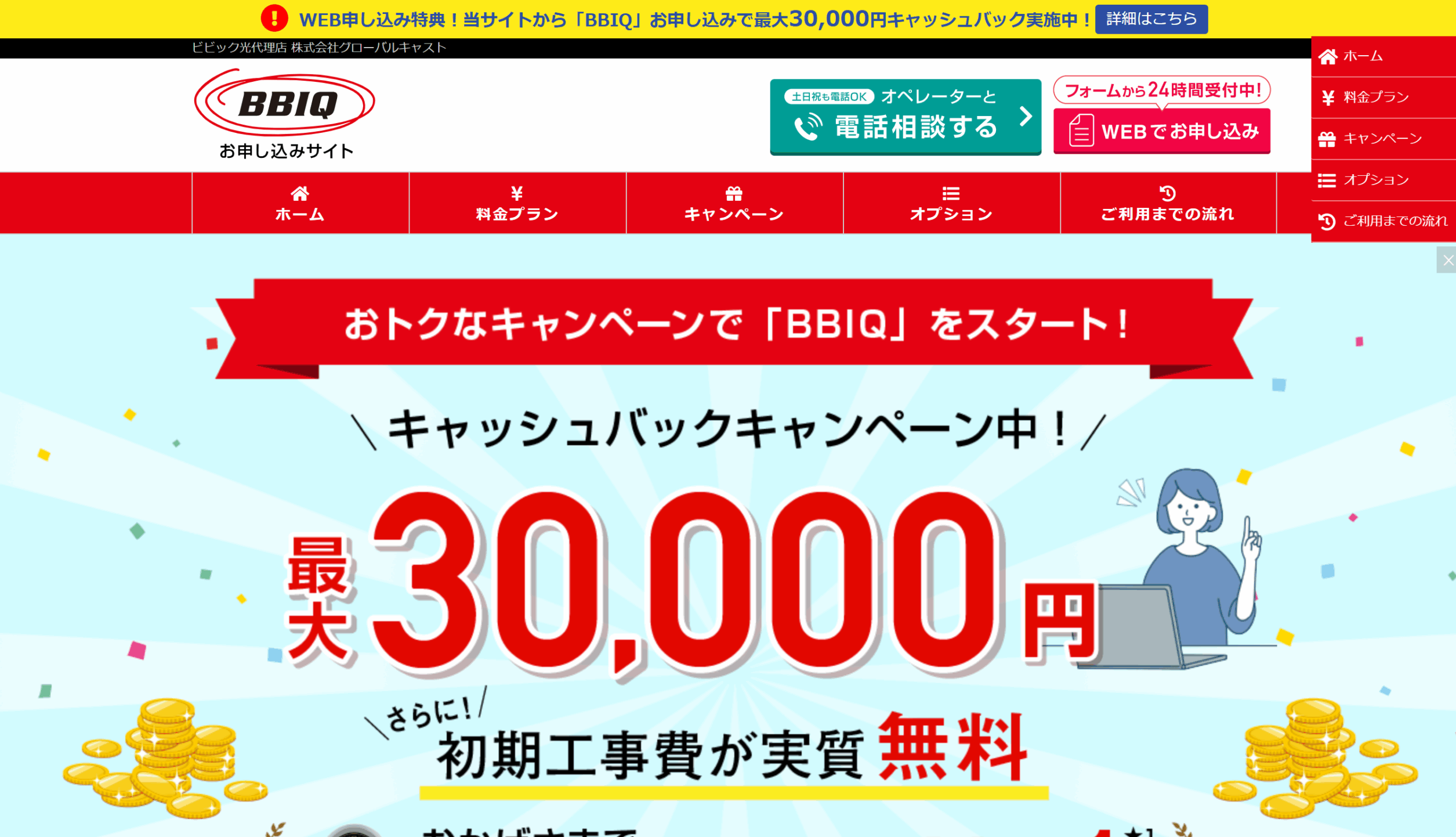 今なら当サイト経由でBBIQをお申し込みいただくと、最大30,000円のキャッシュバックをプレゼント!